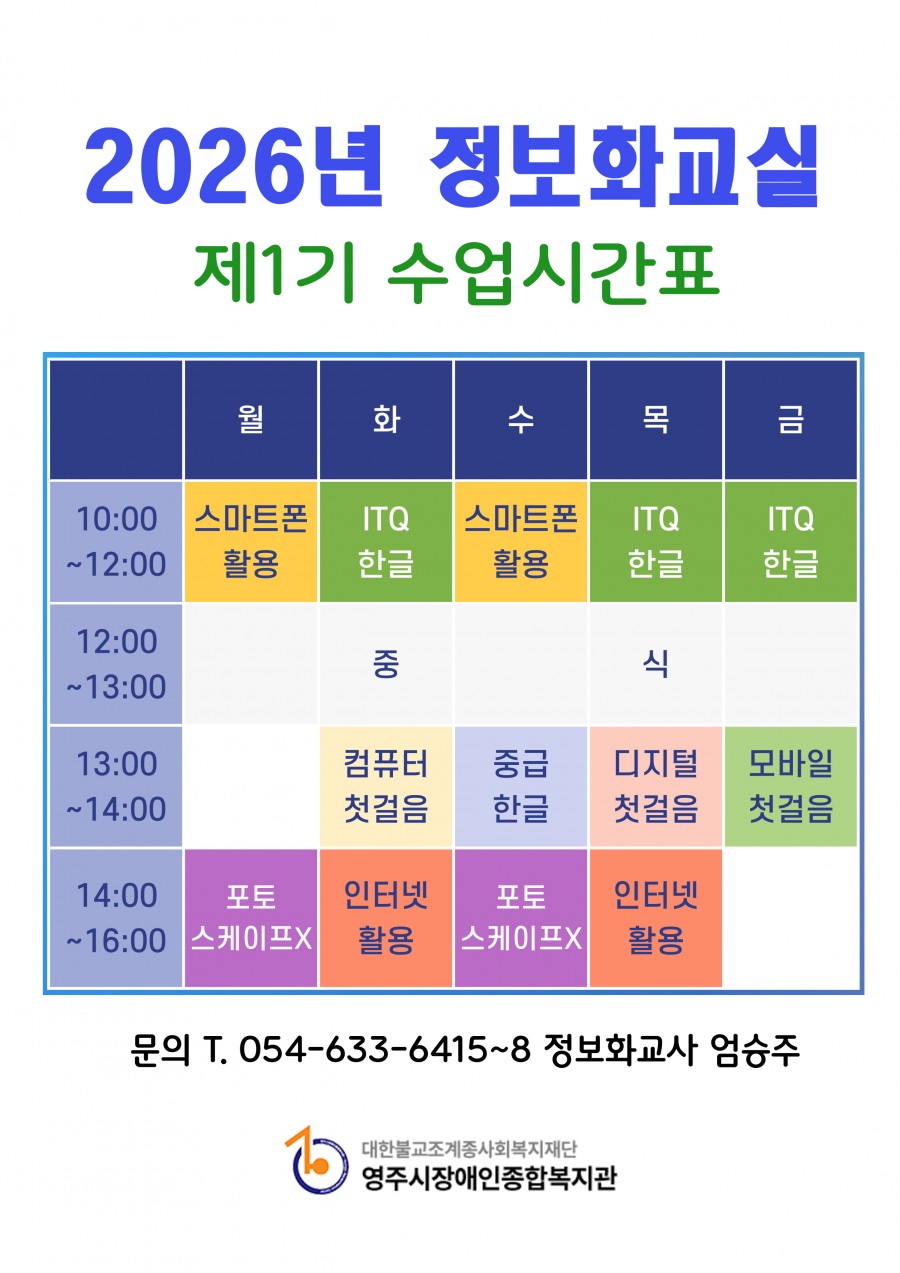 2026년도 정보화교실 1기 수강생을 모집합니다. 많은 관심 부탁드립니다.