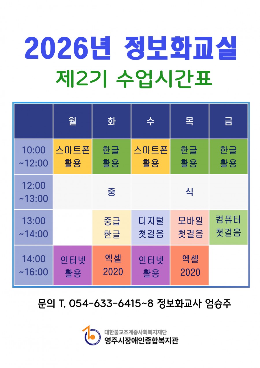2026년도 정보화교실 2기 수강생을 모집합니다. 많은 관심 부탁드립니다.